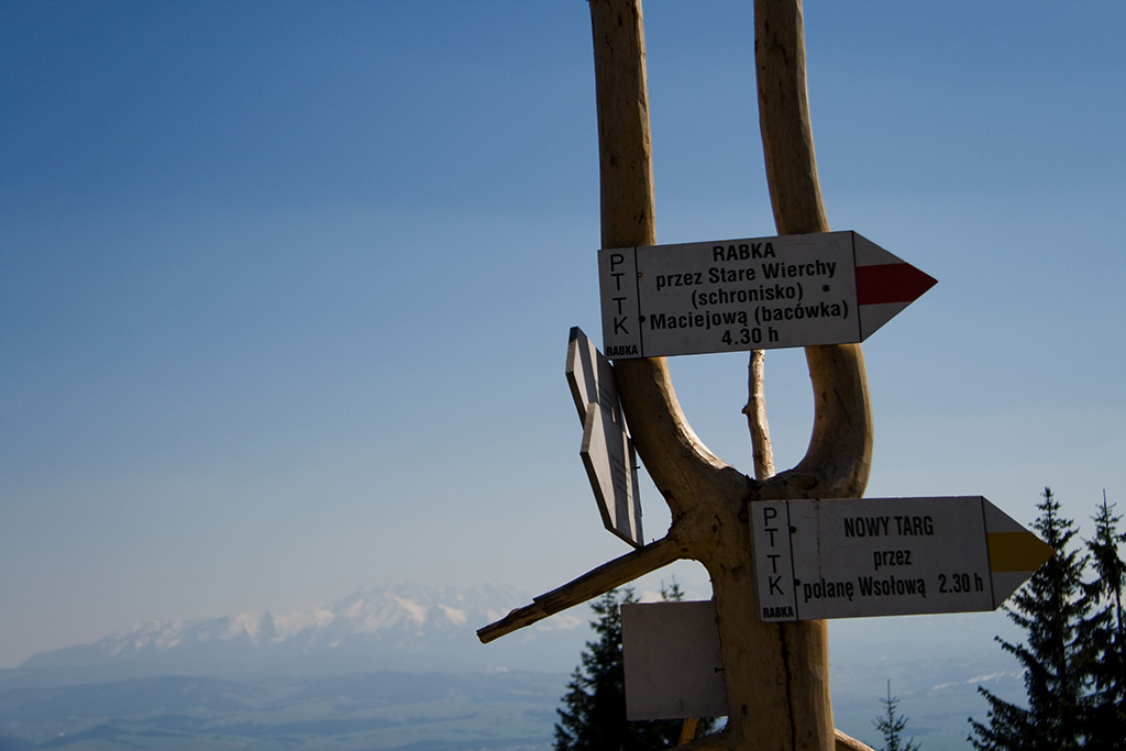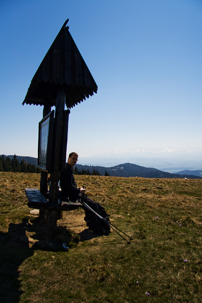 Wreszcie rozpoczęcie sezonu pieszego wędrowania po górach. Sezon otwieraliśmy podczas pięknej pogody przy bezchmurnym niebie i grzejącym słoneczku. Ścieżki zdążyły już obeschnąć, powoli budzi się wiosna. Celem był Turbacz (a raczej schronisko pod szczytem) w paśmie górskim Gorce. Na trasie dopisywały piękne widoki, można było podziwiać wyniosłe Tatry, Beskid Sądecki, Pieniny, Podhale, Beskid Wyspowy no i same Gorce.